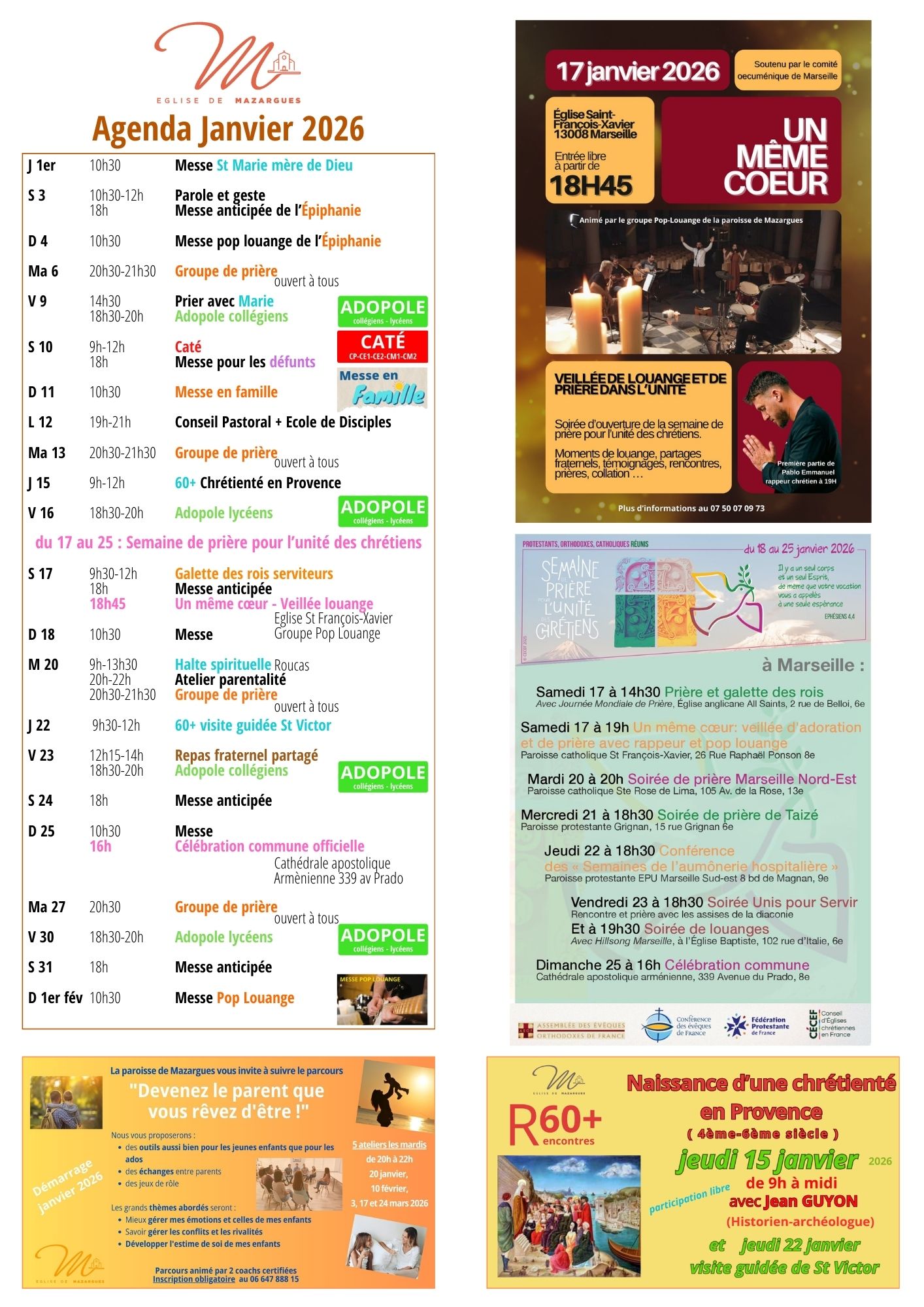 8h à 8h20 Office pour l’Unité des Chrétiens
